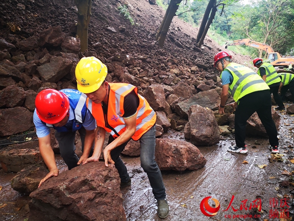 人工清理路邊危石。中交一公局三公司 供圖