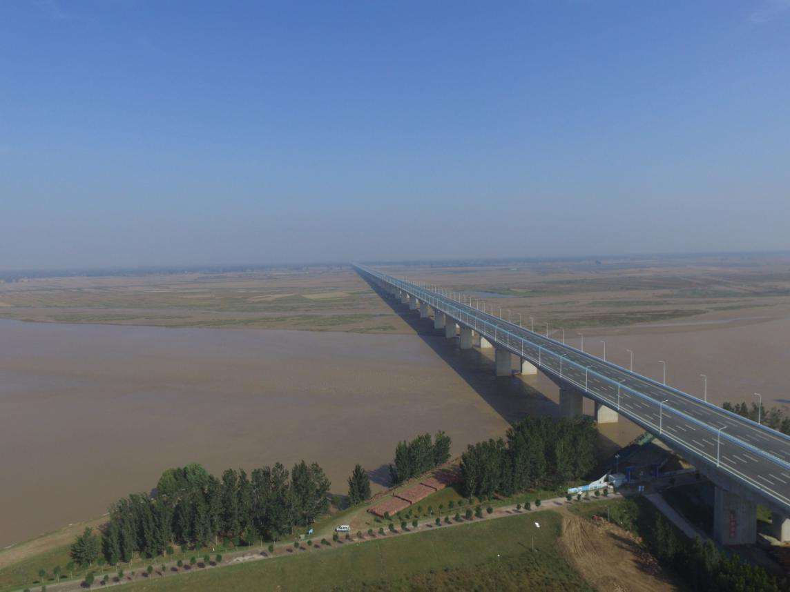 國道107官渡黃河大橋工程位于河南新鄉(xiāng)市,全長30.3公里,全線采用一級公路技術(shù)標準,設(shè)計時速100公里。其中主橋長2325米,是國內(nèi)首座將體外預(yù)應(yīng)力技術(shù)應(yīng)用于大規(guī)模連續(xù)梁的特大橋,也是目前國內(nèi)同類橋梁中體外束根數(shù)最多、噸位最大的特大橋,具有直徑超長樁基、安全管理難度大、環(huán)保要求高等施工難點。